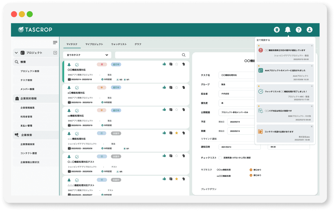 計画通りなのか、遅延しているのかを一覧で確認でき、リカバリーが必要な作業を発見できるようにします。